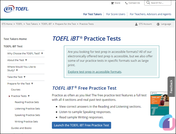 ETS 공식 토플 모의고사 무료 응시 방법