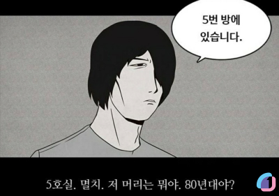 5호실. 멸치. 저 머리는 뭐야. 80년대야?
