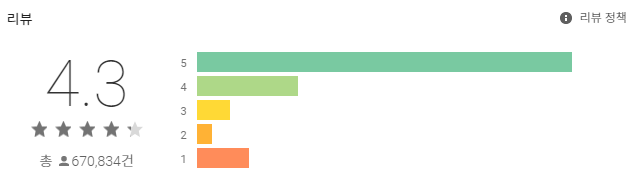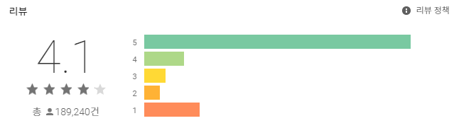 구글플레이 약 19만건 리뷰에 4.1점을 기록하고 있습니다. 출시한지 얼마 되지 않은 게임치고는 상당히 많은 유저수가 있는 것 같습니다. 모바일 게임 pc로 하기에 너무 좋았습니다.
