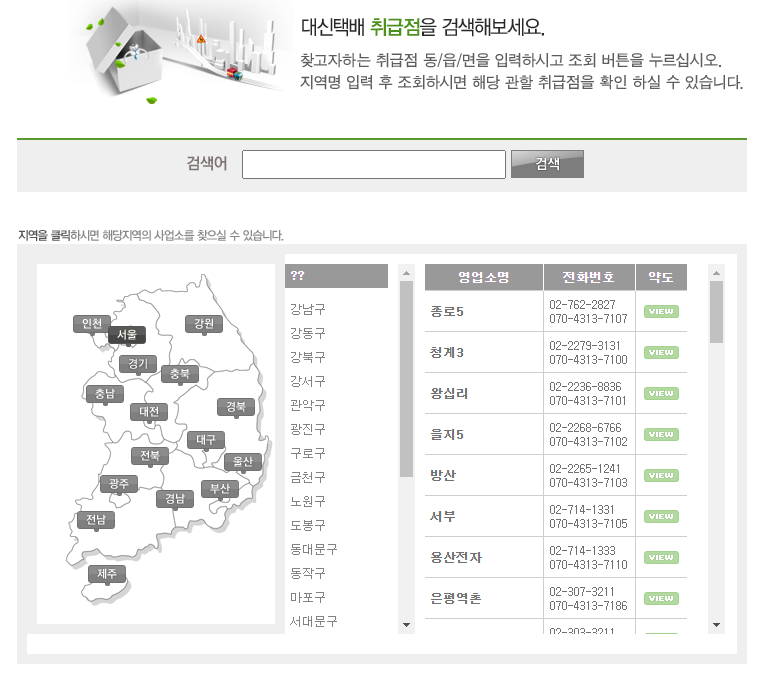 안녕하세요 일시불입니다. 오늘은 대신화물의 영업소 위치를 확인하는 방법과 각 지점 목록을 조회하는 방법에 대해서 알아보겠습니다.
