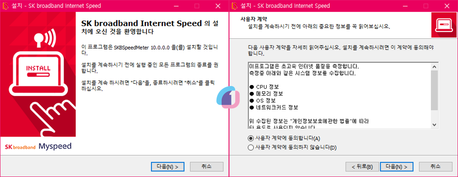 그 다음으로는 정확한 측정을 위해 측정 프로그램이 설치됩니다. SKT와 SK브로드밴드 모두 동일한 프로그램이기 때문에 어느 곳에서 설치하셔도 동일합니다.
